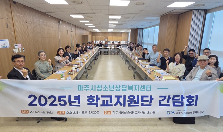 [뉴스시대=김정희 기자] (재)파주시청소년재단 파주시청소년상담복지센터(센터장 장문희)는 9월 30일 오후 3시, 센터 내 백리향에서 관내 초·중·고 33개교 교장을 대상으로 '2025년 청소년안전망 학교지원단 간담회'를 개최했다.