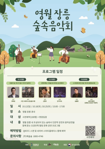 [뉴스시대=김정희 기자] 영월군은 오는 10월 12일, 18일, 25일 오후 3시부터 5시까지 세계유산 장릉 경내에서 ‘영월 장릉 숲속 음악회’를 개최한다.