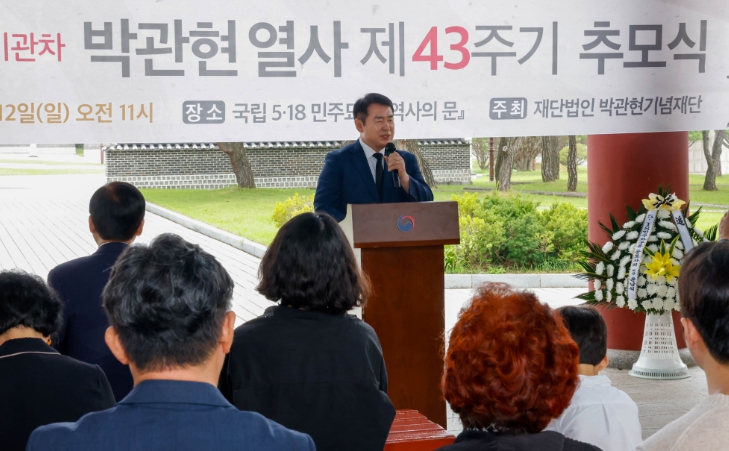 [뉴스시대=김정희 기자] 이정선 광주시교육감이 12일 국립5·18민주묘지 ‘역사의 문’ 앞에서 열린 ‘민주화의 새벽기관차 박관현 열사 제43주기 추모식’에 참석했다.