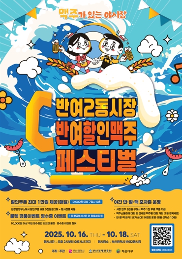 [뉴스시대=김정희 기자] 해운대구 반여2동시장는 16일부터 18일까지 ‘반여2동시장 반·할·맥 페스티벌’을 개최한다.