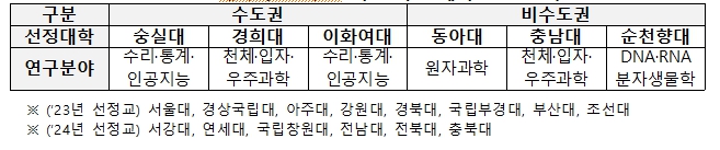 ▲ 2025년 대학기초연구소 지원 사업 예비 선정 결과 |
