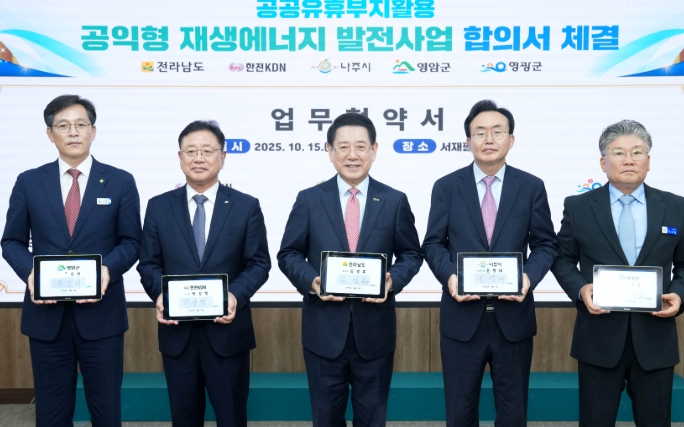 [뉴스시대=김정희 기자] 전라남도는 15일 새정부의 재생에너지 대전환 기조와 재생에너지 보급 확대 정책에 따라 나주시, 영광군, 영암군, 한전KDN과 탄소중립 실현·에너지 기본소득 실현을 위한 ‘공익형 재생에너지 발전사업’ 업무협약을 했다고 밝혔다.