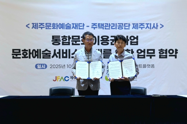 [뉴스시대=김정희 기자] 제주문화예술재단과 주택관리공단 제주지사는 지난 13일 통합문화이용권 사업(문화누리카드)과 연계한 문화예술 서비스 확대를 위해 업무협약을 체결했다.