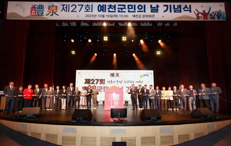 [뉴스시대=김정희 기자] 예천군은 16일 오후 3시, 예천군문화회관에서 ‘제27회 예천군민의 날 기념식’ 을 성황리에 개최했다. 이번 행사는 기관·단체장과 군민 등 500여 명이 참석한 가운데, 군민의 자긍심을 높이고 군민 화합을 도모하는 뜻깊은 자리로 마련됐다.