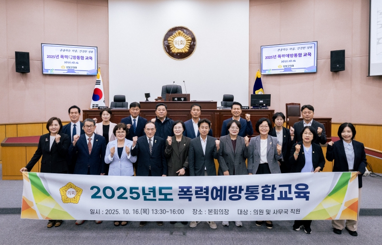 임태근 의장은“공직자로서 책임감을 갖고 성인지 감수성을 함양하는 것이 평등하고 안전한 조직문화 조성의 핵심”이라고 말하며“의회가 모범이 되어 공직사회 내 존중과 배려의 문화를 확산해야 한다”고 강조했다.