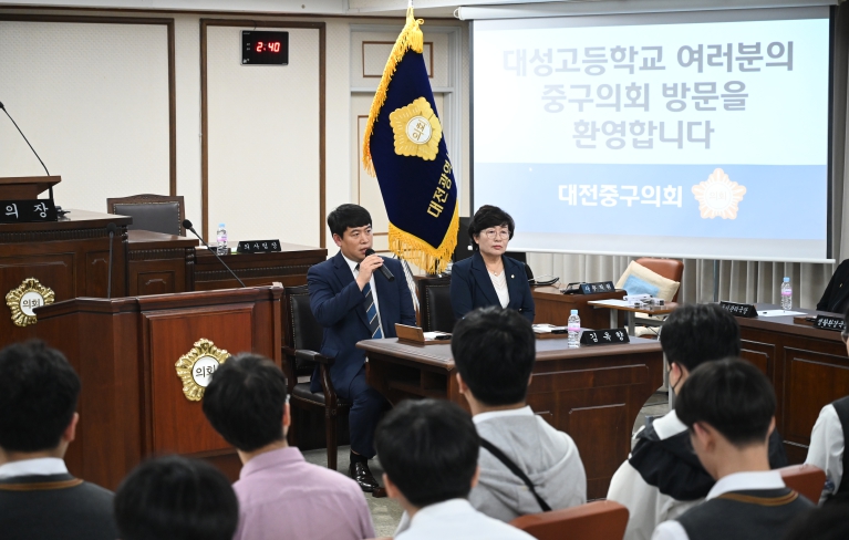 [뉴스시대=김정희 기자] 대전 중구의회는 17일 대전대성고등학교 학생들을 대상으로 의회 견학프로그램을 진행했다.