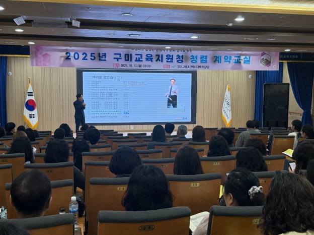 [뉴스시대=김정희 기자] 경상북도구미교육지원청(교육장 민병도)은 10월 13일 구미교육지원청 신청사 1층 다목적강당에서 관내 학교 계약업무 담당자를 대상으로 ‘2025년 구미교육지원청 청렴 계약교실’ 연수를 실시했다.