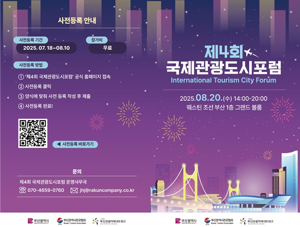 [뉴스시대=김정희 기자] 부산시는 20일 오후 2시 웨스틴 조선 부산(1층 그랜드 볼룸)에서 '제4회 국제관광도시 포럼'을 개최한다고 밝혔다.