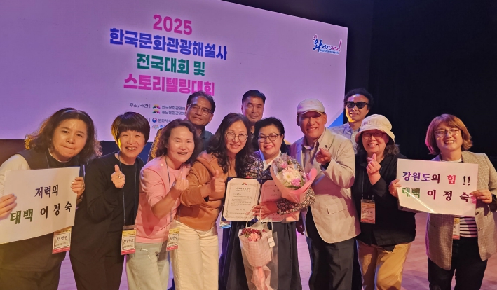 [뉴스시대=김정희 기자] 태백시는 시 문화관광해설사 이정숙 씨가 지난 9월 29일부터 30일까지 충남 부여에서 열린 '2025년 한국문화관광해설사 스토리텔링 경연대회'에서 최고상인 금상을 수상했다고 밝혔다.