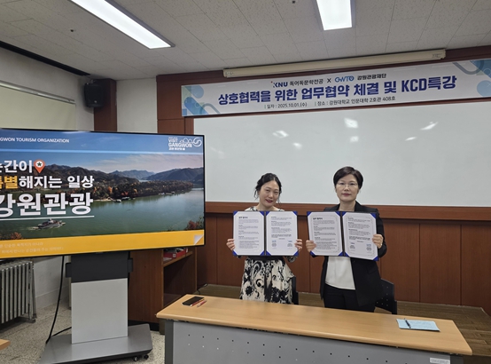 [뉴스시대=김정희 기자] 강원관광재단 글로벌마케팅실은 10월 1일 강원대학교 독어독문학전공과 글로벌 관광 전문 인재 양성을 위한 업무협약(MOU)을 체결했다.