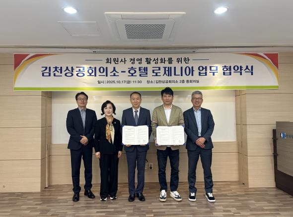 [뉴스시대=김정희 기자] 김천상공회의소는 지난 10월 17일 로제니아 호텔과 업무협약을 체결했다.