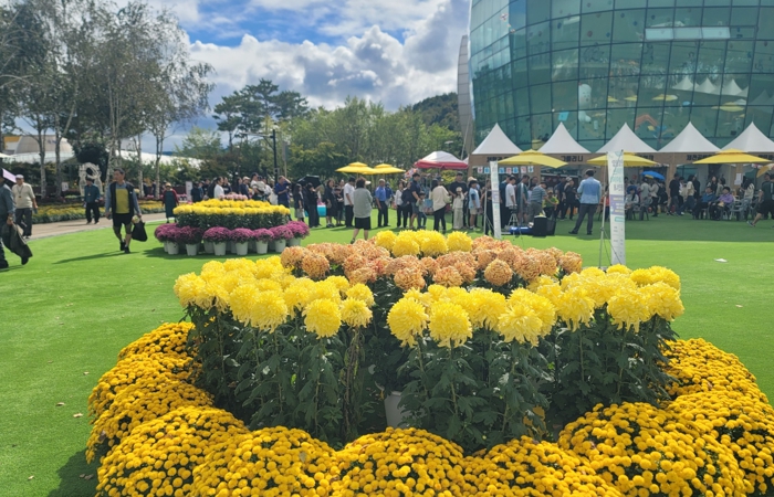 [뉴스시대=김정희 기자] 가을 연휴 기간 내린 비가 그친 뒤, 2025 제천국제한방천연물산업엑스포 광장이 화사한 꽃물결로 물들었다.