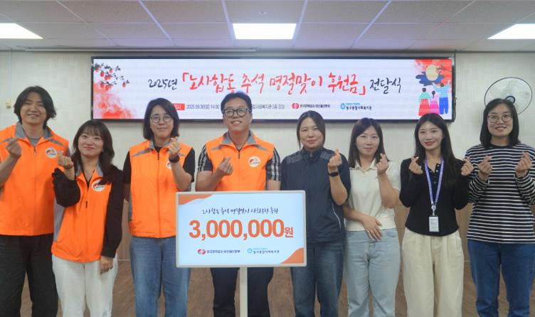 [뉴스시대=김정희 기자] 부산 동구종합사회복지관은 지난 9월 30일, 추석 명절을 앞두고 한국전력공사 부산울산본부로부터 노사 합동으로 마련한 300만 원의 후원금을 전달받았다고 밝혔다.