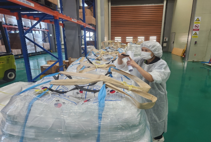 ▲ 국산 영양강화립을 혼합한 식량원조용 영양강화쌀 선적 검사(2025년 9월) |